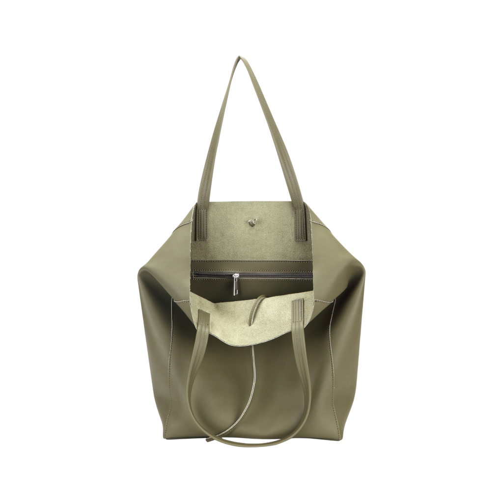 Das vegane Leder unserer Taschen wird aus Polyurethan hergestellt. Polyurethan ist ein synthetisches Material, das als Alternative zu tierischem Leder verwendet wird. Es hat eine ähnliche Optik und Haptik wie echtes Leder, ist strapazierfähig, wasserabweisend und leicht zu reinigen.