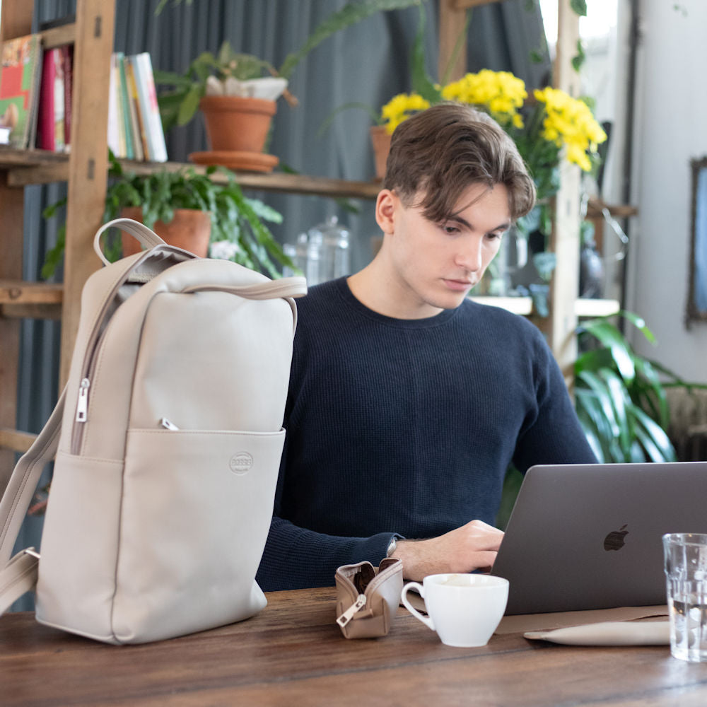 Das vegane Leder unserer Taschen wird aus Polyurethan hergestellt. Polyurethan ist ein synthetisches Material, das als Alternative zu tierischem Leder verwendet wird. Es hat eine ähnliche Optik und Haptik wie echtes Leder, ist strapazierfähig, wasserabweisend und leicht zu reinigen.
