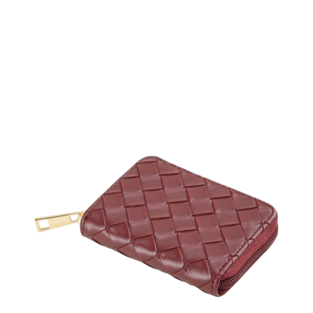 Veganes Portemonnaie mit Flechtoptik in Bordeaux – stilvoll, praktisch und vegan. Aus hochwertigem, veganem Leder und Innenfutter aus 100 % recycelten PET-Flaschen. Bietet viel Platz für Karten, Quittungen & Bargeld.