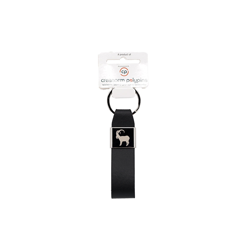 creanorm Schlüsselanhänger Lederband schwarz, mit Steinbock Gravur