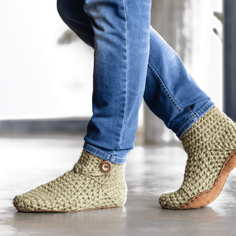 Kingdom of Wow Hausschuhe Wolle-Bambus Winter Moss