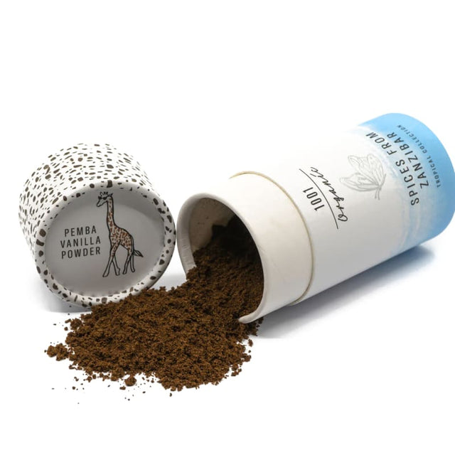 Veredeltes Vanillepulver aus den tropischen Gewürzwäldern der Insel Pemba. Geniesse die reiche und aromatische Qualität dieses exquisiten Gewürzes, das deine Backwaren, Desserts und Getränke verfeinert. Ein Hauch von Exotik für deine kulinarischen Kreationen!