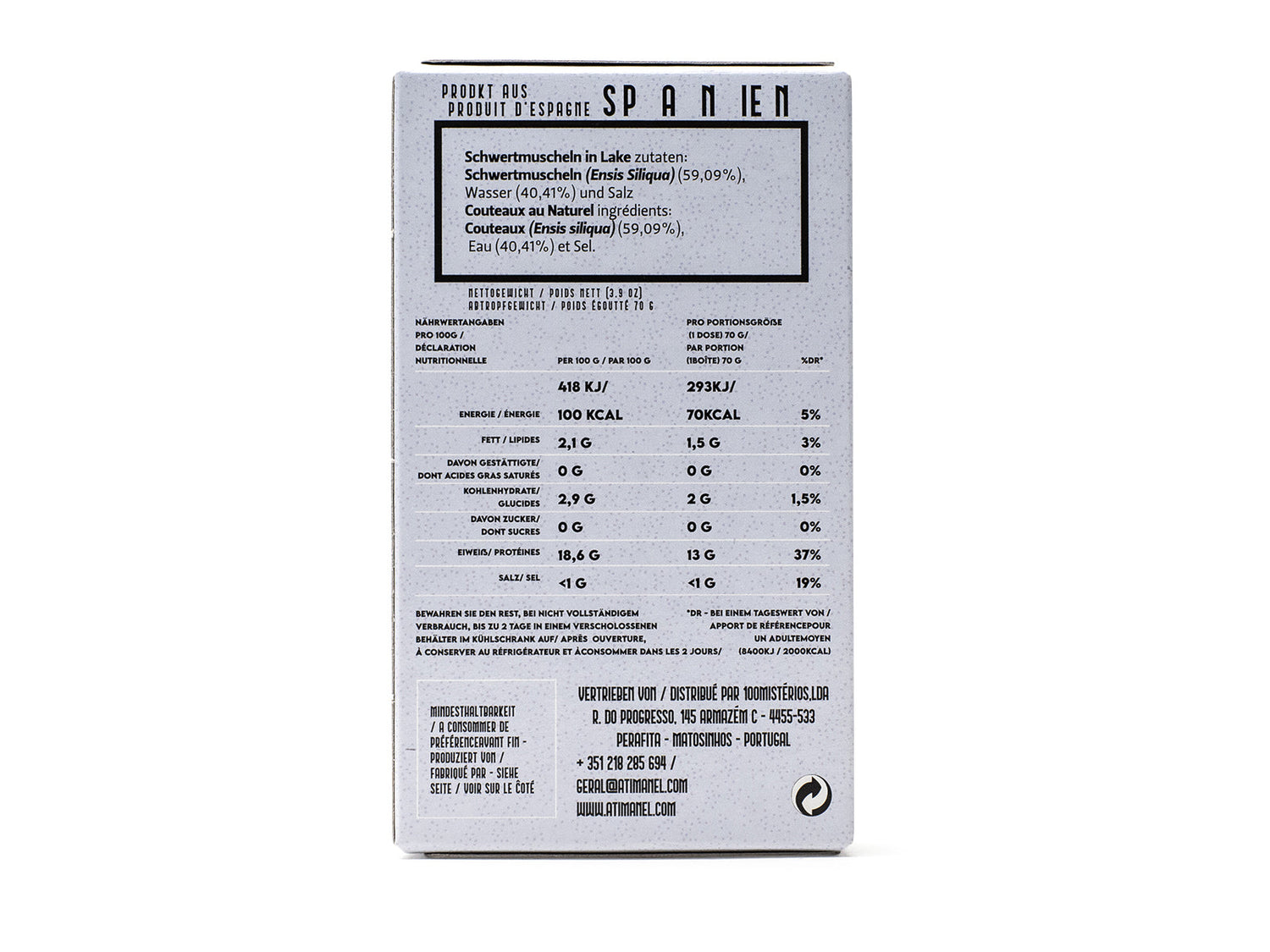 Jose - Schwertmuscheln in Salzlake. Unter Verwendung ausgewählter Meeresschwertmuscheln und veredelt mit einer Salzlake, liefern sie ein einzigartiges Geschmackserlebnis.