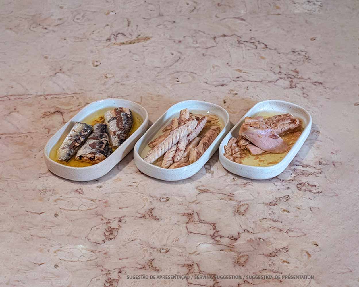 Es gibt Schönheit und Geschmack in der Einfachheit. Diese köstlichen Sardinen, Makrelenfilets und Thunfischfilets, eingelegt in hochwertigem Olivenöl, verwandeln jeden Snack in eine raffiniert zubereitete Mahlzeit.