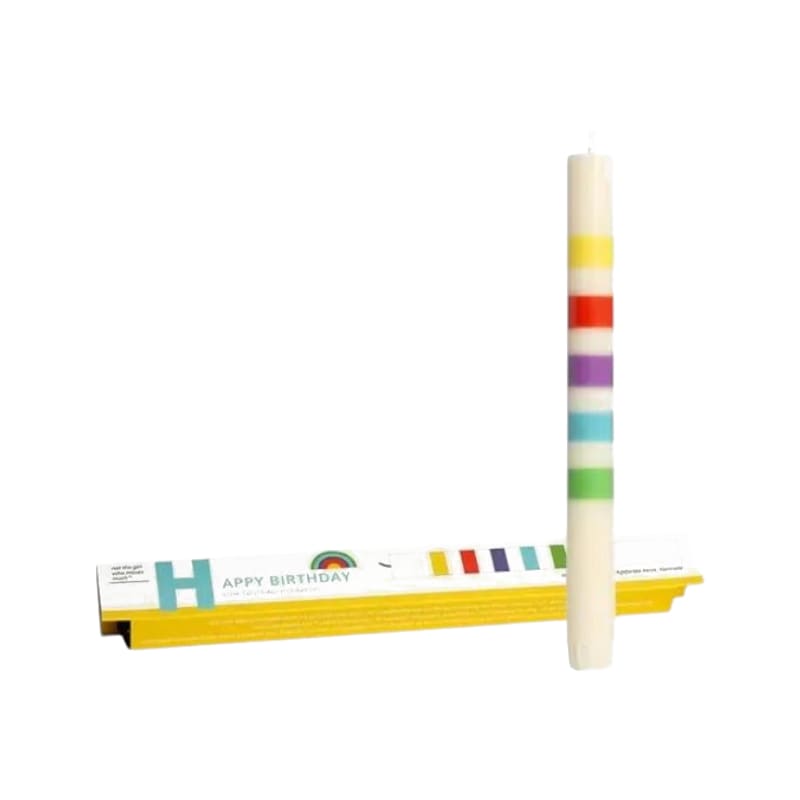 Bringe Farbe in deine Geburtstagsfeier mit der Fidea Happy Birthday Kerze! Die Kerze mit Rainbow sorgt für eine fröhliche Atmosphäre und das Ringel-Design verleiht einen einzigartigen Charme. Perfekt für eine unvergessliche Party!