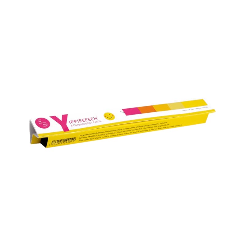 Erwecke die Freude mit der Fidea Yippieh Kerze! Diese Glückwünschkerze bringt Spass und Glück in jeden Raum. Verschenke sie an deine Liebsten oder gönne dir selbst ein bisschen Glück.