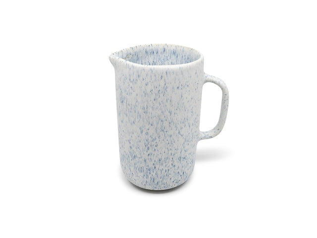 Der Azul Manchado Keramik Krug im matten Weiss und mit feinen blauen Sprenkeln ist ideal für Wasser, Limonade oder Eistee. Mit 1 Liter Fassungsvermögen ist er perfekt für den Alltag und den gedeckten Tisch. Hochwertig verarbeitet und vielseitig einsetzbar – auch als stilvolle Vase für frische oder getrocknete Blumen. Der grosszügige Krug ist ein Highlight auf deinem Tisch und verleiht eine Atmosphäre von mediterranem Flair, Gelassenheit und Eleganz.