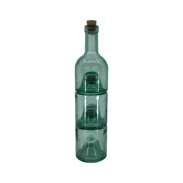 Erlebe den mediterranen Flair in deiner Küche mit unserer einzigartigen, stapelbaren Glasflaschen-Kombination. Dieses Set vereint drei Flaschen in einem eleganten Design, perfekt für deine liebsten Öle, Essige und Balsamico. Aus 100% recyceltem Glass und mit Korkverschluss.