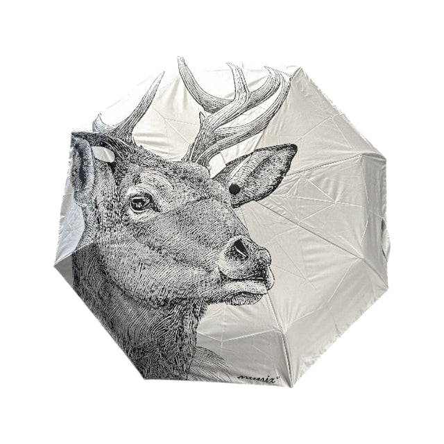 Mit unserem eleganten Regenschirm mit Hirsch-Motiv trotzt du stilvoll jedem Wetter. Dieser Regenschirm kombiniert Funktionalität mit einem edlen Design, das Naturverbundenheit und Stilbewusstsein perfekt miteinander vereint.