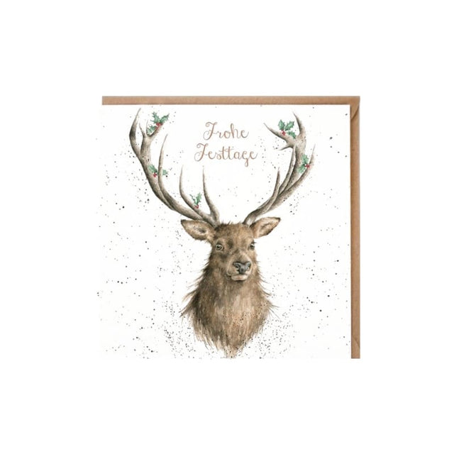 Diese festliche Karte von Wrendale Designs zeigt einen eindrucksvoll illustrierten Hirsch mit winterlichem Flair – elegant, detailreich und voller natürlichem Charme. Ideal für stilvolle Weihnachtsgrüsse, gedruckt auf hochwertigem, strukturiertem Papier und inklusive passendem Umschlag. Ein besonderes Motiv für besondere Menschen.