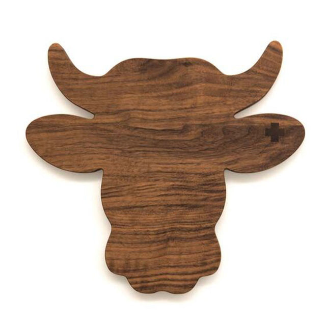 Unser Kuhkopf Brettli ist aus edlem Nussbaumholz gefertigt. Das Design zeigt einen liebevoll gestalteten Kuhkopf mit einem eingravierten Kreuz, was dem Brettli einen traditionellen und charaktervollen Look verleiht.