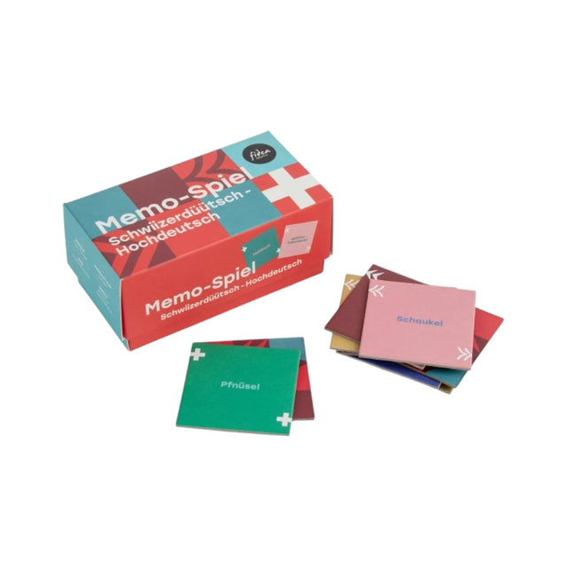 Die beliebte Neuauflage des Fidea Klassikers bringt Schweizerdeutsch spielerisch näher. Mit frischem Design und neuen Wortpaaren verbindet das Memoryspiel Unterhaltung mit Lernen. Perfekt für Sprachliebhaber, Schweiz-Fans oder als originelles Geschenk: Entdecke typische Schwiizerdüütsch-Ausdrücke, übe dein Hochdeutsch-Vokabular und habe Spass mit Familie und Freunden. Ein ideales Gesellschaftsspiel für gemütliche Abende, Reisen oder als Mitbringsel – für alle, die die Schweizer Kultur spielerisch erleben möchten.