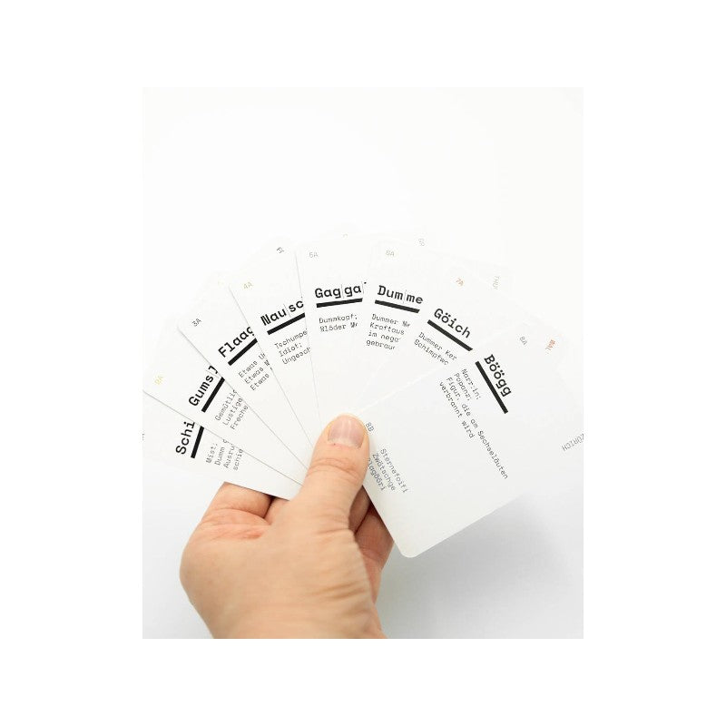 Mach dich bereit für ein humorvolles Kartenspiel, das den echten Berner Dialekt zelebriert! Das Bärndütsch Quartett "Flueche im Dialäkt" bringt die besten und witzigsten Flüche, Redensarten und Sprüche in Berndeutsch direkt an deinen Spieltisch. Mit 32 sorgfältig ausgewählten Karten tauchst du ein in die Welt der deftigen, kreativen und authentischen Flüche, die nur der Berner Dialekt so einzigartig auszudrücken vermag.