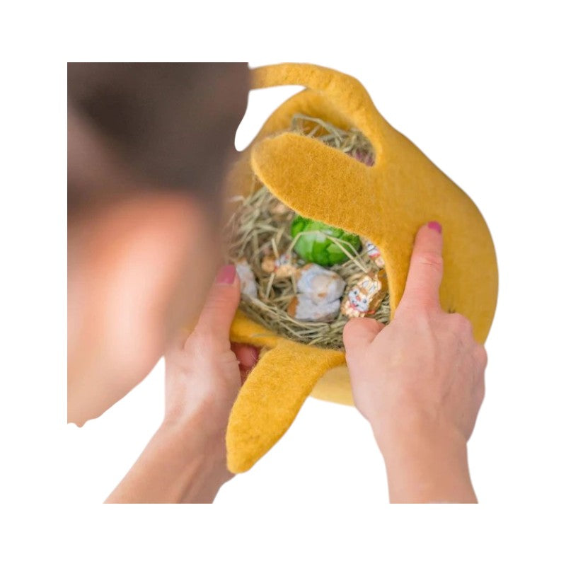 Dieses handgefertigte Filzkörbchen in Hasenform ist der perfekte Begleiter für kleine und grosse Osternestsucher. Mit seinem liebevollen Design eignet es sich nicht nur für die Ostereiersuche, sondern auch das ganze Jahr über als Aufbewahrung für kleine Schätze. Ob im Kinderzimmer, auf dem Tisch oder als Teil einer frühlingshaften Dekoration – der nachhaltig produzierte Filzkorb bringt Natürlichkeit und verspielten Charme in dein Zuhause.