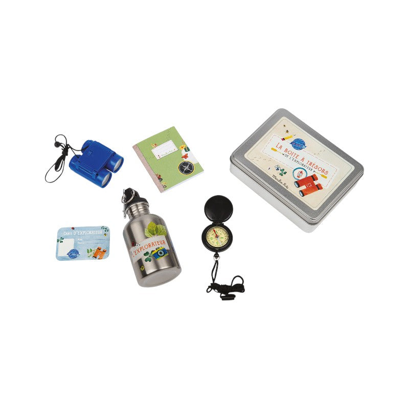 Dieser Explorer-Koffer enthält alles, was junge Entdecker brauchen: Taschenkompass, Fernglas, Trinkflasche, Notizbuch und Schatztruhe. Ideal für spannende Abenteuer und neue Entdeckungen!