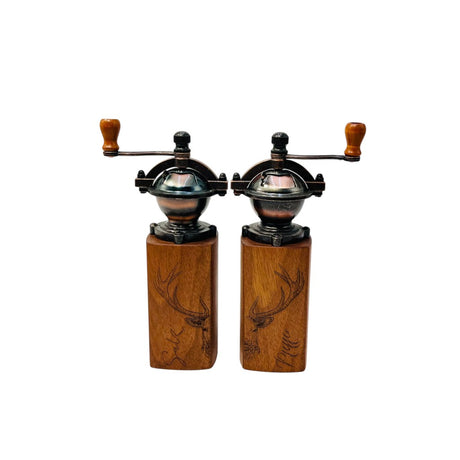HoizArt Gewürzmühlen-Set, Vintage mit Gravur "Hirsch", Nussbaum