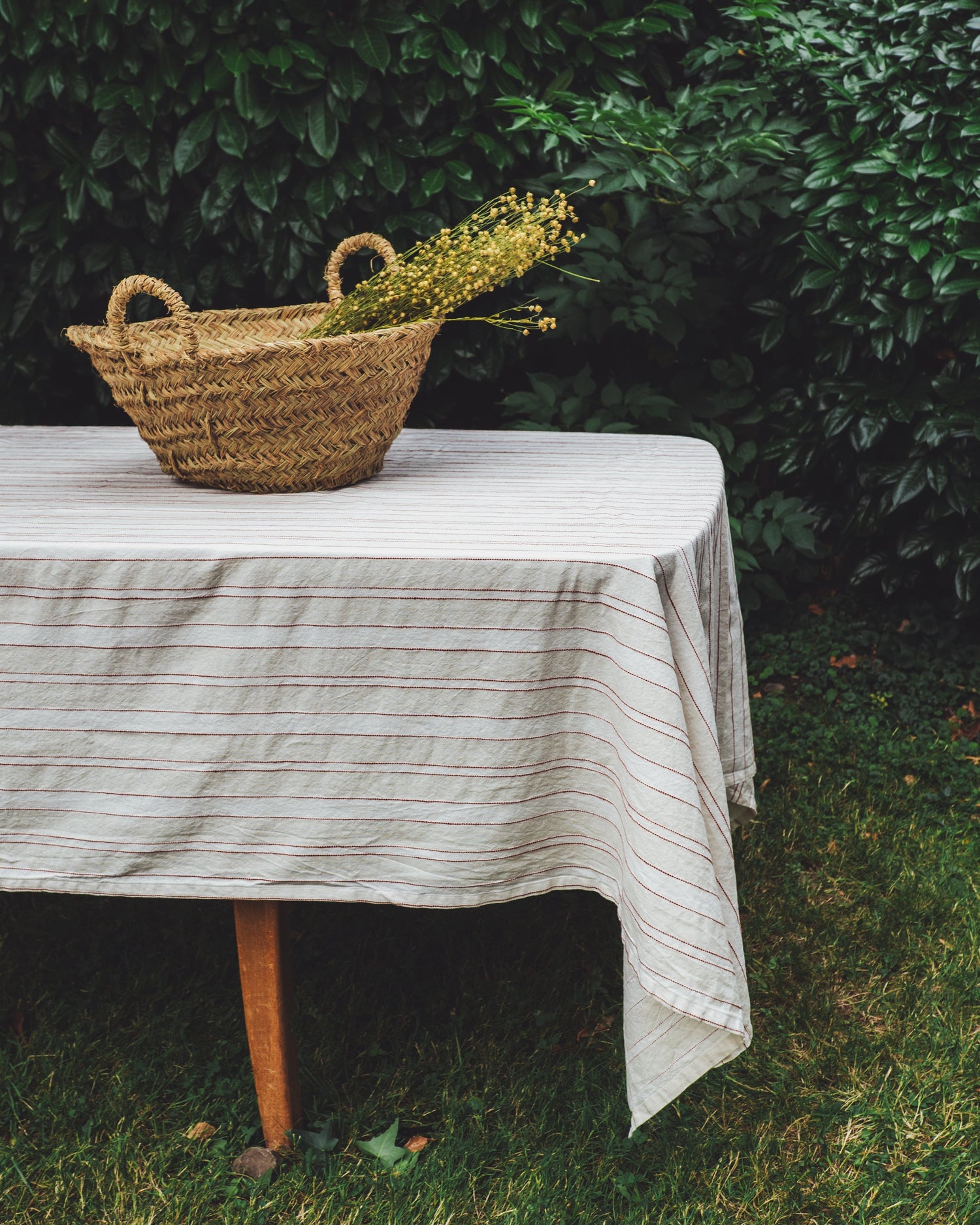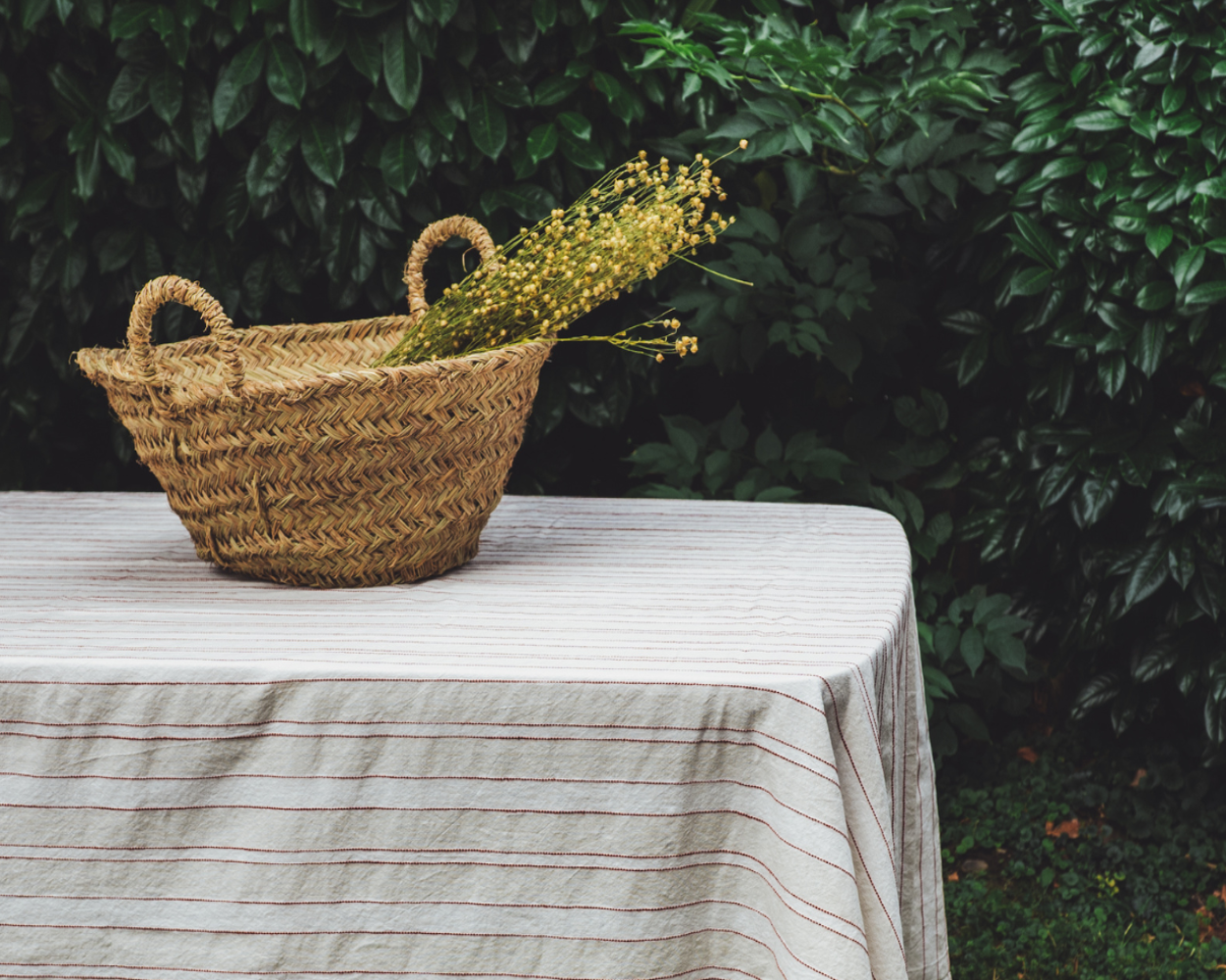 Die Aldeia - Tischdecke mit den erdigen, terracotta-farbenen Linien verkörpert eine mediterrane Ästhetik, die sich wunderbar mit portugiesischem Geschirr kombinieren lässt. Mit den Massen 160 x 260 ist es ideal für eine mittlere Tischgrösse geeignet. Die hochwertige Verarbeitung der Leinen garantiert Langlebigkeit und ein angenehmes Tastgefühl. Egal, ob du eine intime Abendgesellschaft oder eine festliche Feier planst, unser Tischtuch ergänzt die Eleganz deiner Tischgestaltung.