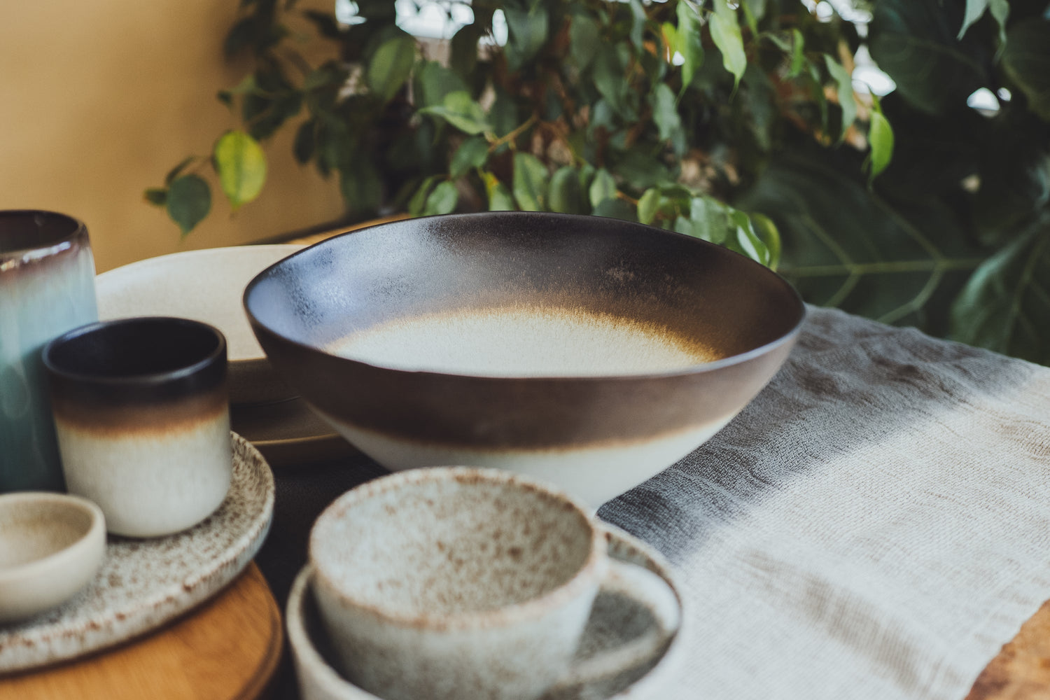 Die Casca de Coco Salatschale begeistert mit einem besonderen Farbverlauf: Von mattem Creme zu sanftem Braun-Schwarz – jede Schale ist ein handgefertigtes Unikat aus Portugal. Gefertigt aus hochwertiger Steingutkeramik, überzeugt sie durch Langlebigkeit und zeitlose Eleganz. Ein stilvolles Highlight für deinen Tisch, das natürliche Wärme in dein Zuhause bringt.