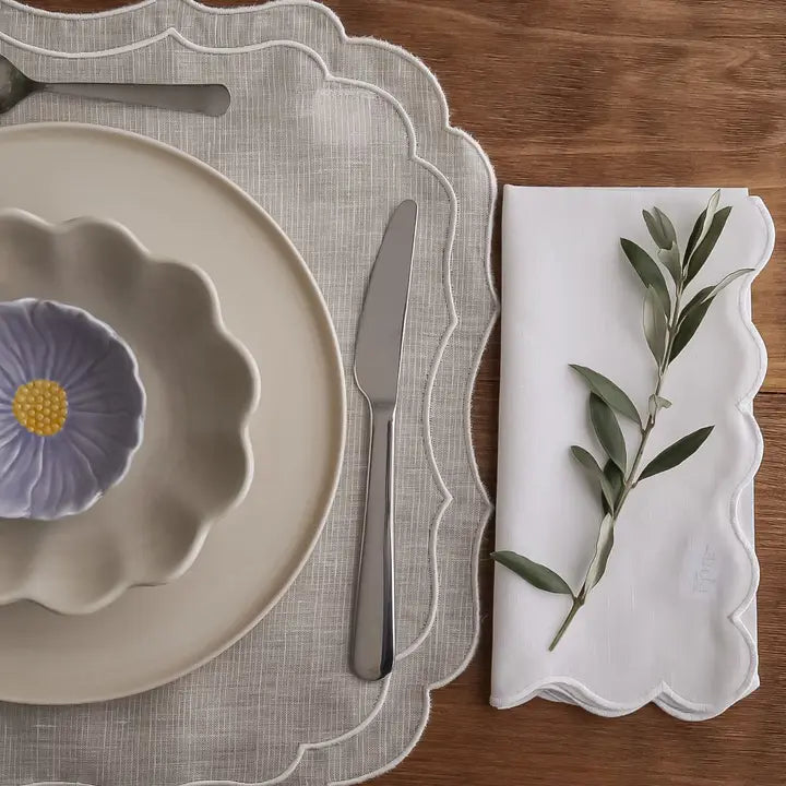 Die Stoffserviette Guarda in klassischem Weiss vereint zeitlose Schlichtheit mit feiner Handwerkskunst. Hergestellt aus edlem Leinen und verziert mit einer dezenten Wellenstickerei, bringt sie Leichtigkeit und Eleganz auf deinen Tisch – ob im Alltag oder zu besonderen Anlässen.