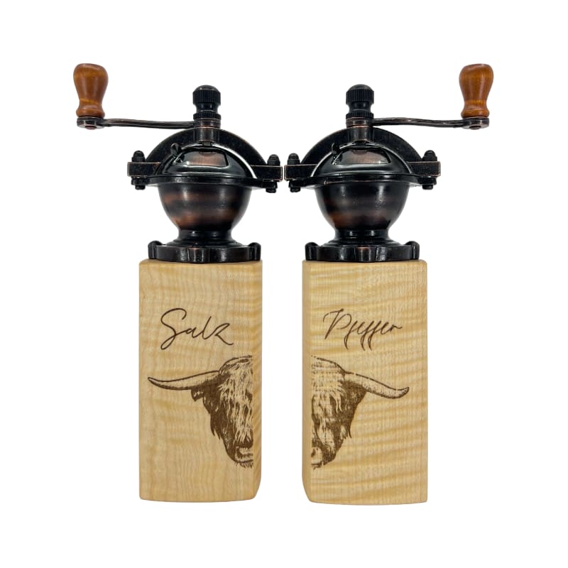 HoizArt Gewürzmühlen-Set, Vintage mit Gravur "Hochlandrind"