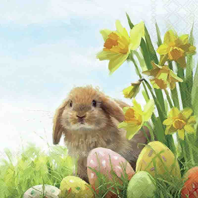 Der süsse Hase Fluffy schaut sich gerne auf deinem Ostertisch um.