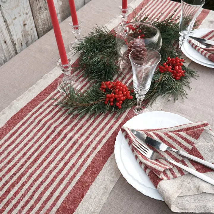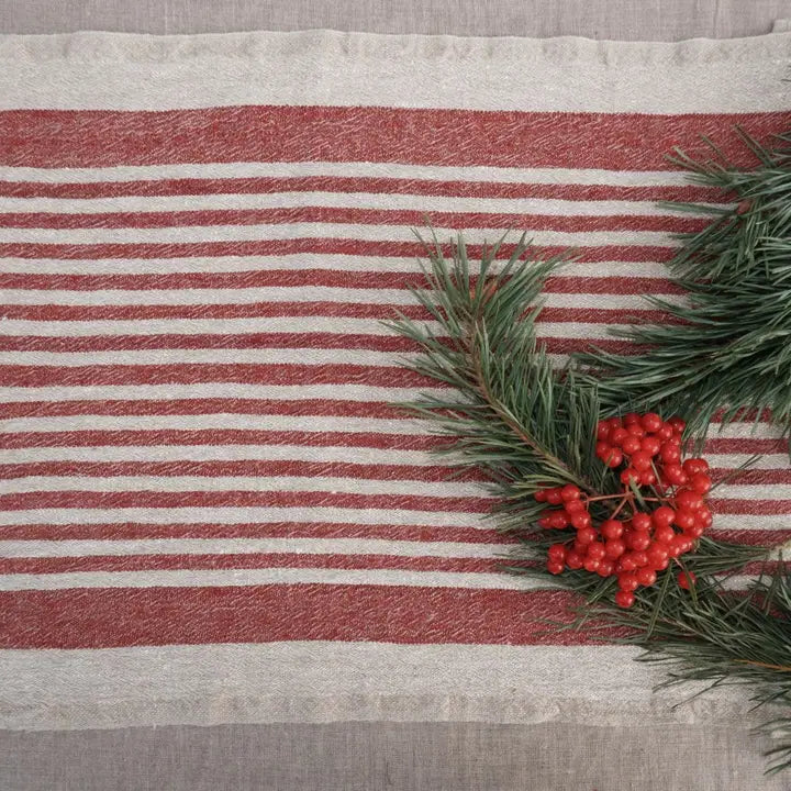 Verleihe deinem Esstisch einen Hauch von Eleganz und Raffinesse mit unserem gestreiften Tischläufer aus schwerem Leinen. Dieser hochwertige Tischläufer ist aus erstklassigem Leinen gefertigt und bringt sofort Stil und Atmosphäre in jeden Raum.