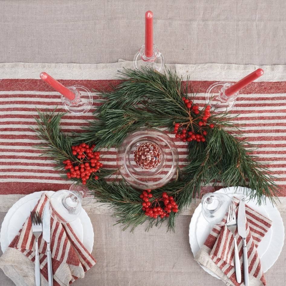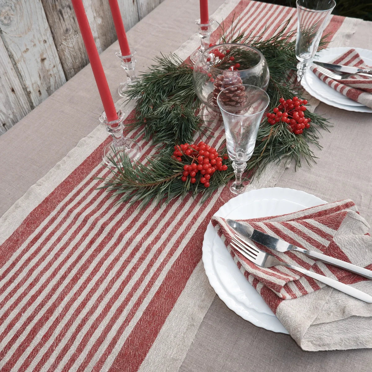 Verleihe deinem Esstisch einen Hauch von Eleganz und Raffinesse mit unserem gestreiften Tischläufer aus schwerem Leinen. Dieser hochwertige Tischläufer ist aus erstklassigem Leinen gefertigt und bringt sofort Stil und Atmosphäre in jeden Raum.
