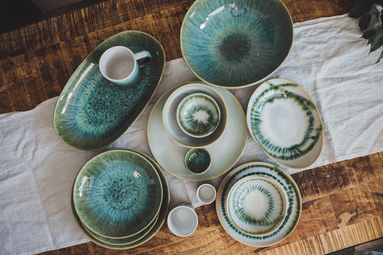 Vulcão Verde – „grüner Vulkan“ – ist mehr als ein Name: Die reaktive Glasur dieser handgefertigten Servierplatte erinnert an kraftvolle Natur und lebendige Kultur Portugals. Mit ihren liebevollen Details und dem einzigartigen Farbverlauf wird sie zum Blickfang auf jedem Tisch. Ideal zum stilvollen Anrichten von Speisen und für besondere Genussmomente – ob für Apéros, Hauptgerichte oder Desserts.