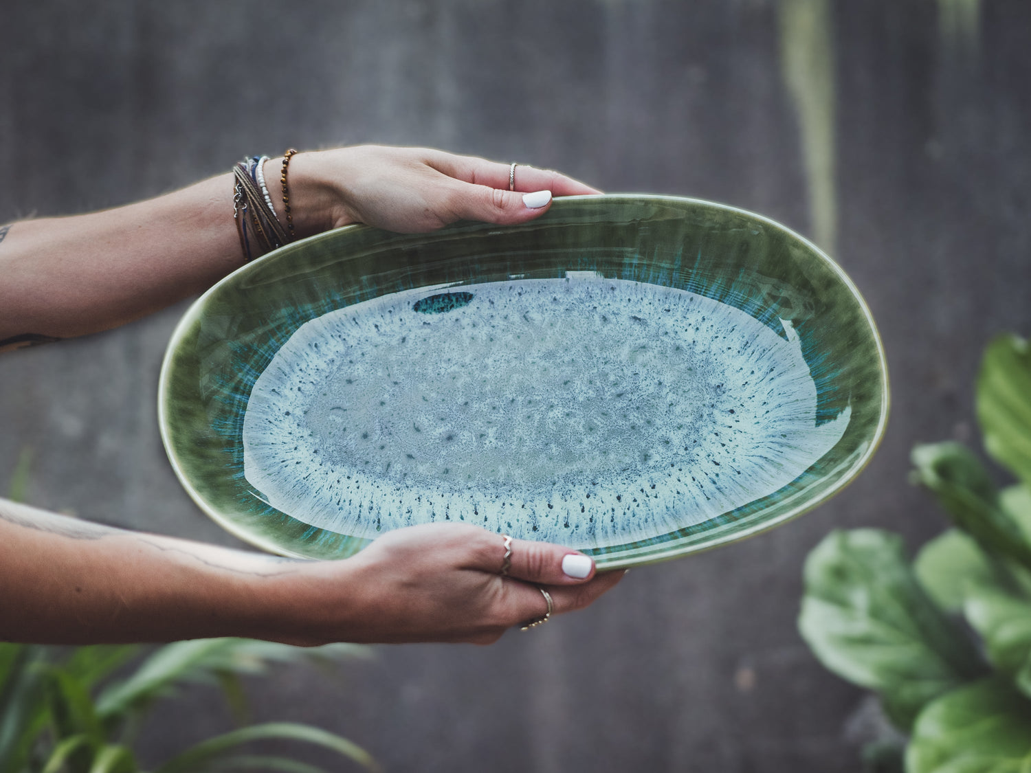 soñho Vulcão Verde Servierplatte grün reaktiv