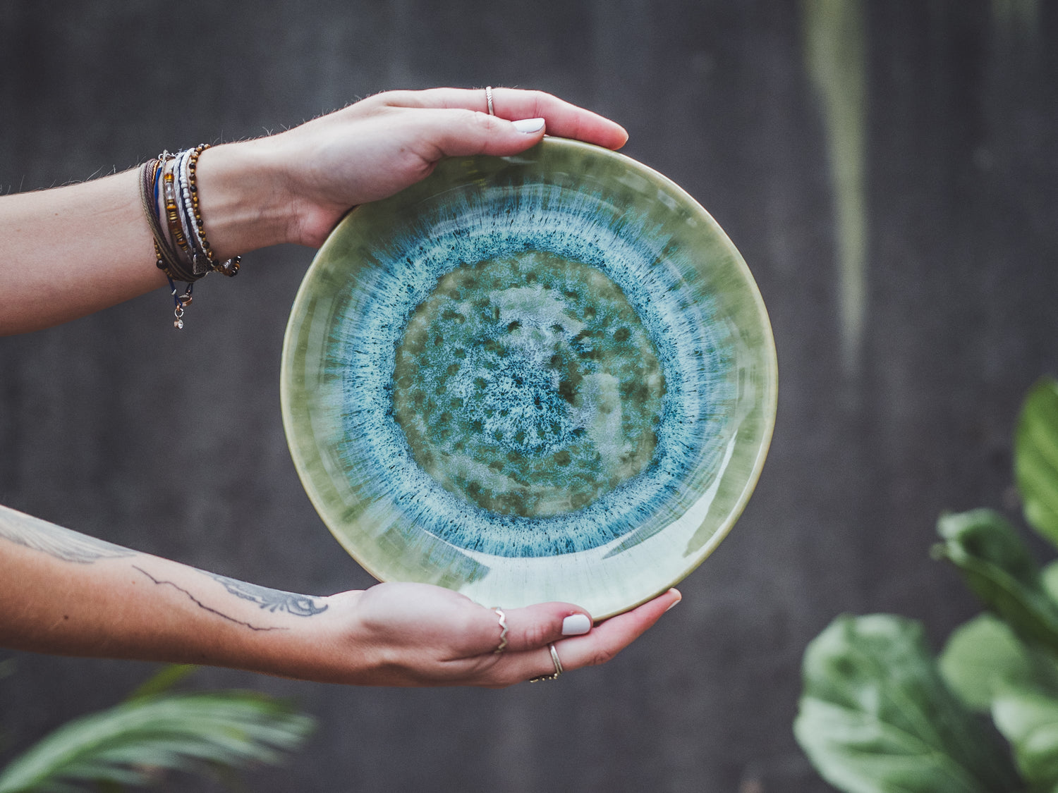 Der kleine Vulcão Verde Teller bringt mit seiner reaktiven Glasur in lebendigem Grün ein Stück portugiesische Handwerkskunst auf deinen Tisch. Jedes Stück ist ein Unikat und erzählt mit seiner einzigartigen Farbstruktur von Tradition, Natur und Kreativität. Mit einem Durchmesser von 22 cm eignet er sich ideal für Vorspeisen, Desserts oder kleine Gerichte – und macht dein Tischsetting zu einem stilvollen Erlebnis.