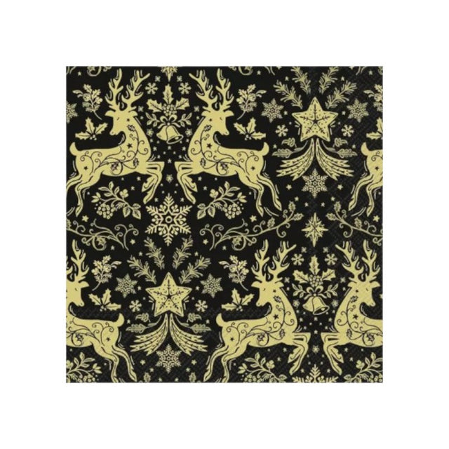 Wimmel Servietten 33x33 cm CHRISTMAS ORNAMENTS schwarz/gold