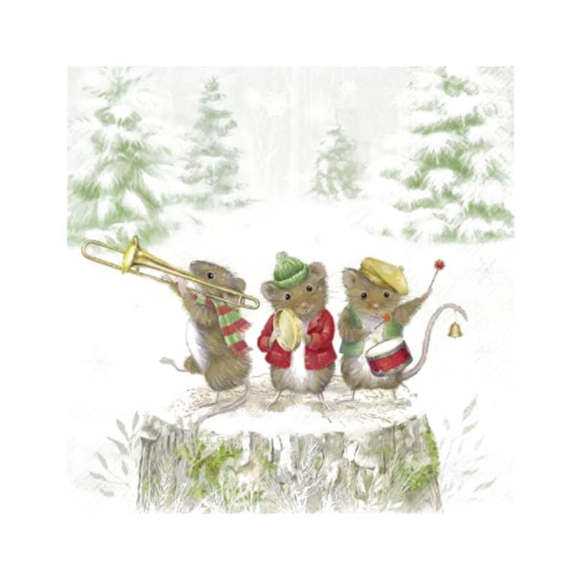 Musikalischer Spass für deinen Tisch! Die Wimmel-Servietten «MOUSE BAND» zeigen eine fröhliche Mäuse-Band mit Instrumenten und liebevollen Details. Perfekt für Kindergeburtstage, Partys oder als witziger Hingucker.