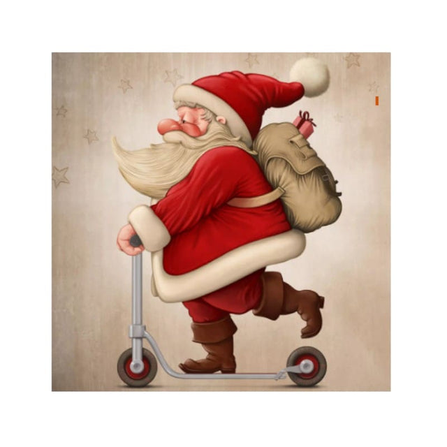 Weihnachten mal anders: Diese fröhlichen Servietten zeigen den Weihnachtsmann auf dem Scooter – modern, charmant und mit liebevollen Details illustriert. Ideal für festliche Tischdekoration mit einem Augenzwinkern.