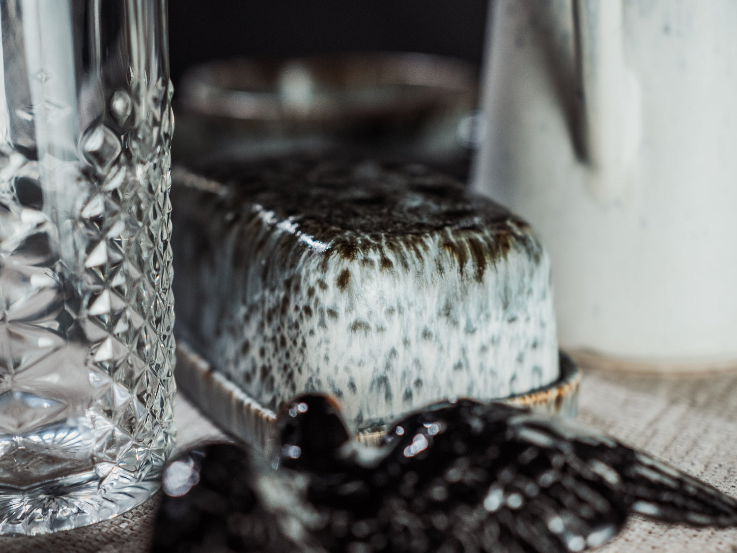 Stilvoll, funktional und perfekt auf Schweizer Butter abgestimmt: Die Anoitecer Butterdose vereint handgemachte portugiesische Keramikkunst mit durchdachtem Design. Das gesprenkelte Grau-Weiss erinnert an das schimmernde Wasser des Douro-Flusses bei Abenddämmerung, während die sanft geschwungene Form an portugiesische Häuserzeilen im letzten Licht des Tages erinnert. Handgefertigt in Portugal – uma combinação perfeita für jeden Frühstückstisch.