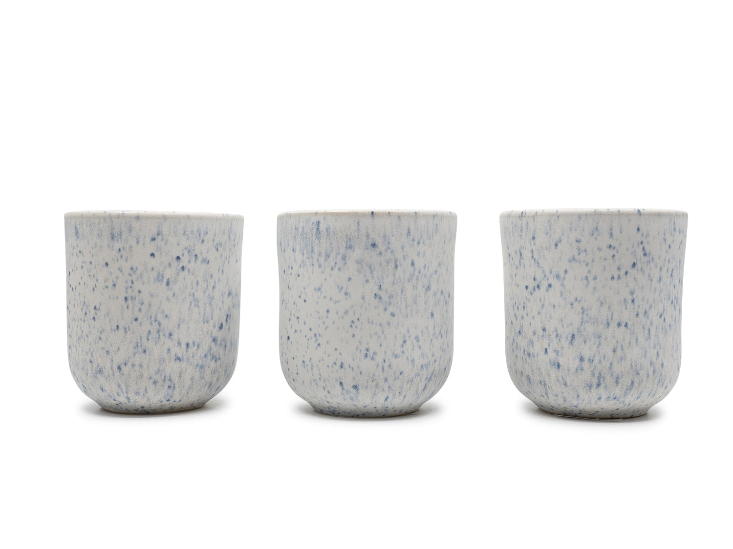Die Azul Manchado Becher verbinden mattes Weiss mit feinen blauen Sprenkeln – inspiriert vom klaren Himmel Portugals. Die harmonische Farbgebung und die sorgfältige Verarbeitung sorgen für eine angenehme Haptik und machen jeden Becher zu einem stilvollen Begleiter für Heiss- und Kaltgetränke. Handgefertigt in Portugal, ist jedes Stück ein Unikat mit eigener Ausstrahlung.