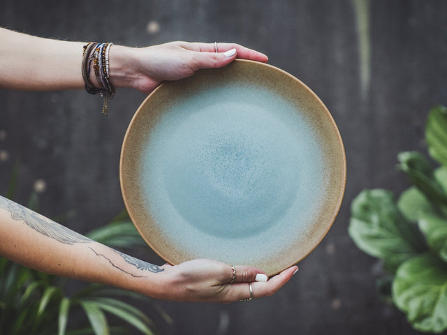 Der Menta Teller begeistert mit einem ausdrucksstarken Farbverlauf in Grün und Braun, der jedem gedeckten Tisch eine natürliche, mediterrane Note verleiht. Mit seinem Durchmesser von 26 cm eignet er sich ideal für Hauptgerichte und liebevoll angerichtete Speisen. Ob für besondere Anlässe oder den stilvollen Alltag – dieser Keramikteller verbindet Ästhetik mit Funktionalität. Robust und langlebig gefertigt, begleitet er dich über viele Jahre hinweg. Zeitlos schön. Handgefertigt mit portugiesischem Flair.