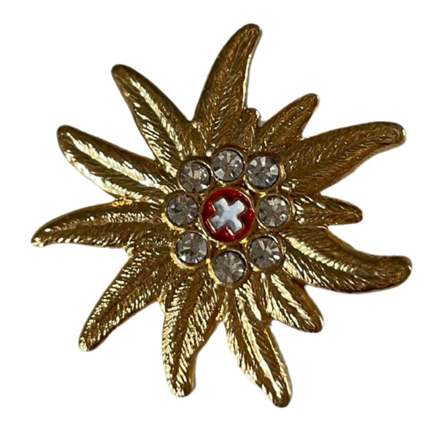creanorm Pin Edelweiss gold mit Strasssteine und Schweizerkreuz, 30mm