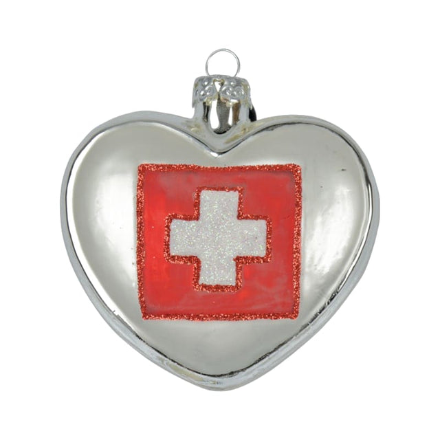 creanorm Glas Ornament Herz mit Schweizerkreuz