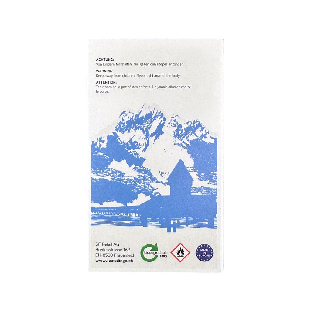 Mit seiner eigenwilligen Silhouette ist der Pilatus ein echter Blickfang unter den Schweizer Bergen – und auf dieser Streichholzschachtel als stilisierte Grafik in kräftigem Die grafische Darstellung zeigt nicht nur den Berg, sondern auch den See und das berühmte Luzerner Seebecken – eine Hommage an einen der bekanntesten Orte der Zentralschweiz.