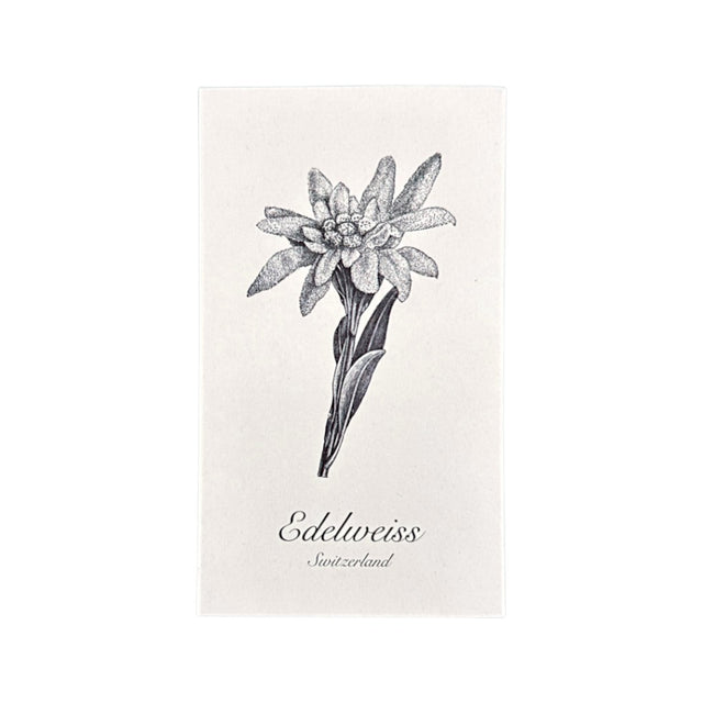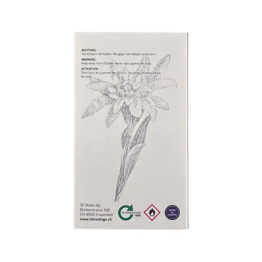 Das Edelweiss – Symbol der Berge, der Erinnerung, der Beständigkeit. Auf dieser mumix Streichholzschachtel trifft das alpine Motiv auf klare Gestaltung im Miniaturformat. Ein kleiner Alltagsgegenstand, der mit seiner feinen Illustration leise Freude bringt. Ideal für Kerzen, Feuerstellen oder als liebevolles Mitbringsel – schlicht, schön und typisch mumix.