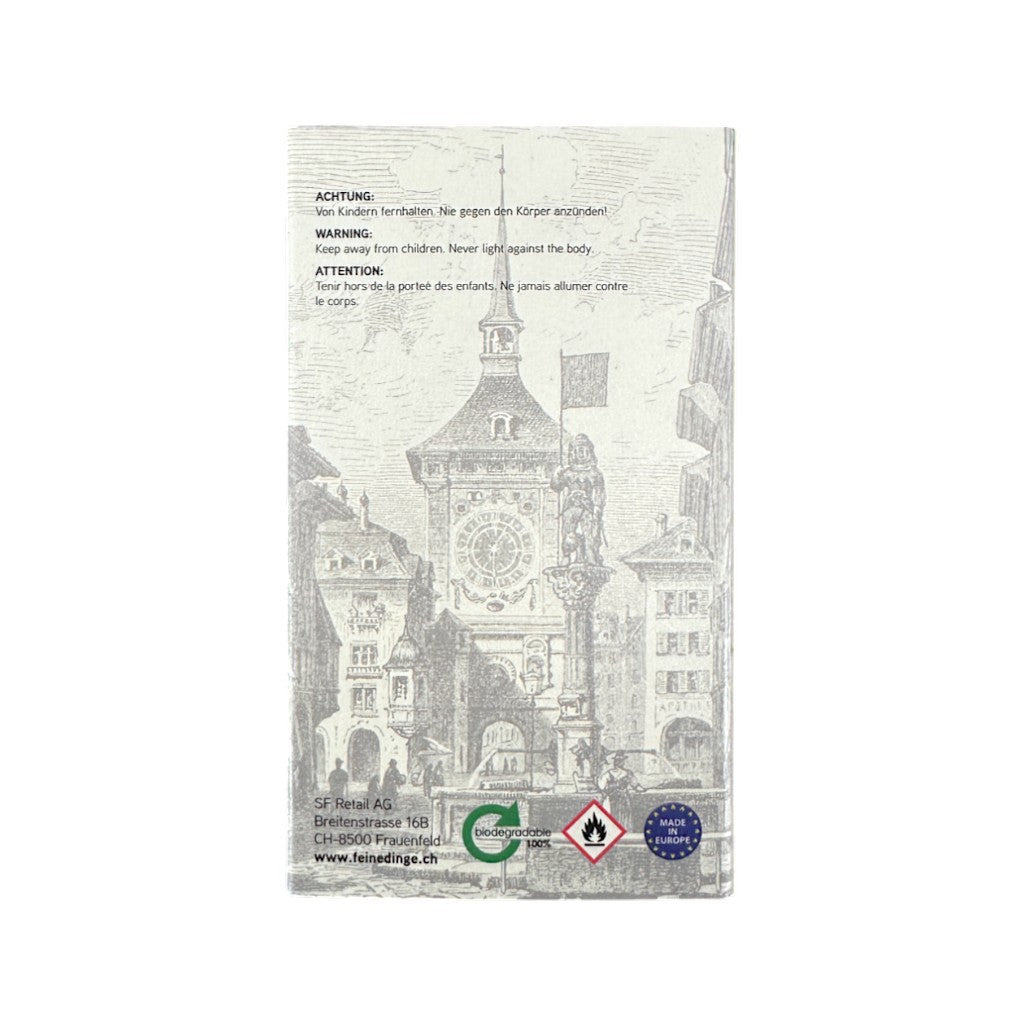Die Berner Zytglogge – ein Wahrzeichen mit Geschichte, ein stiller Zeuge vergangener Zeiten. Auf dieser mumix Streichholzschachtel wird sie in zarter Linienführung verewigt – schlicht, charmant und mit einem Hauch Nostalgie. Ob für Kerzenlicht am Tisch, das Kaminfeuer oder als liebevolles Detail zum Geschenk – dieses kleine Objekt bringt Wärme und Erinnerung zusammen.
