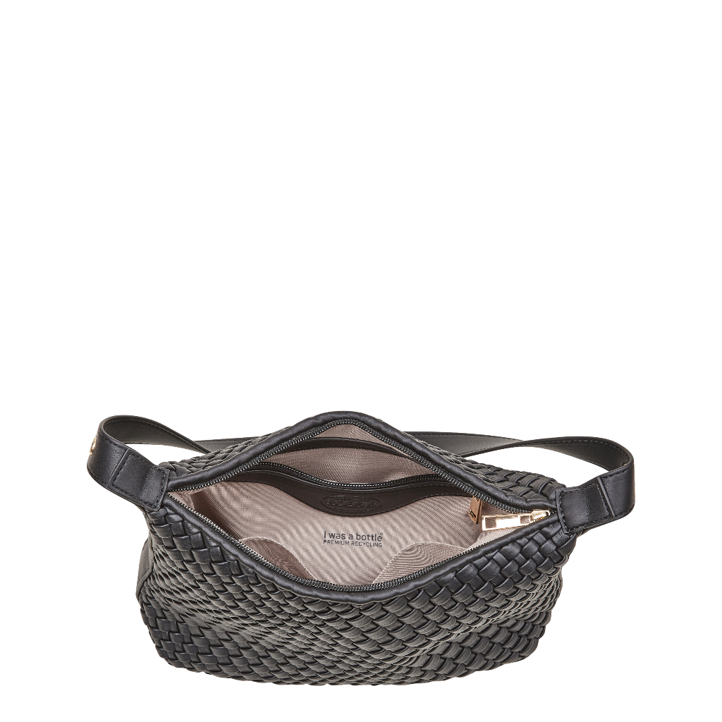 Die Mathilda in klassischem Schwarz aus der Premium Kollektion des schweizer Taschenlabels ROSSIS steht für schlichte Eleganz und klare Linien. Aussen aus veganem Leder handgeflochten und innen mit einem Futter aus 100 Prozent recyceltem PET ausgestattet, kombiniert sie modernes Design mit Funktionalität. Trotz ihres kleineren Formats verfügt sie über ausreichend Platz für alle wichtigen Essentials.