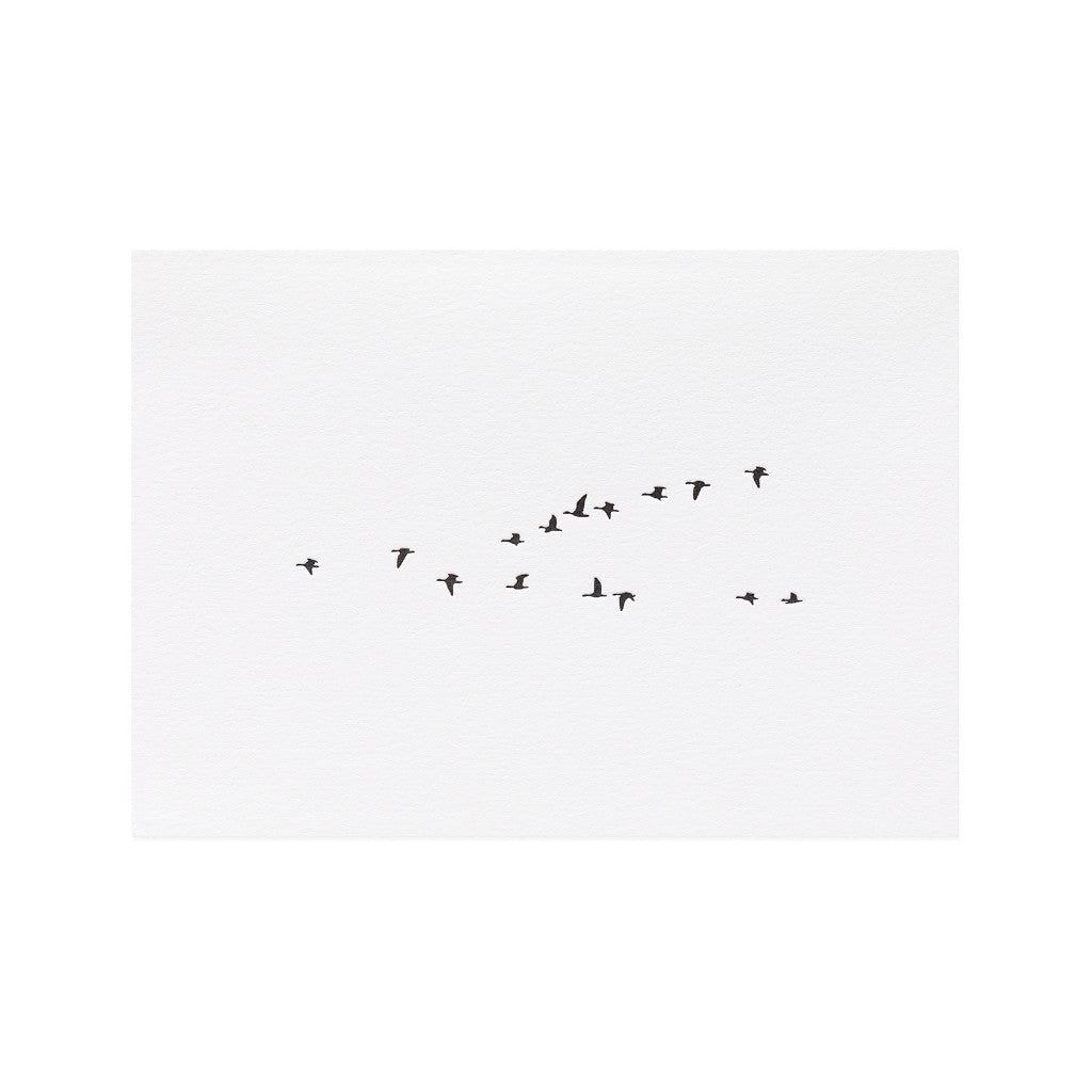 Die Faltkarte Gänseflug im A6 Format überzeugt mit einer ruhigen, poetischen Bildsprache und zeitloser Gestaltung. Das Motiv des fliegenden Gänsezugs steht für Aufbruch, Zusammenhalt und neue Wege. Hochwertig gefertigt und vielseitig einsetzbar eignet sich die Karte ideal für persönliche Grüsse, besondere Anlässe oder als stilvolle Beilage zum Geschenk.