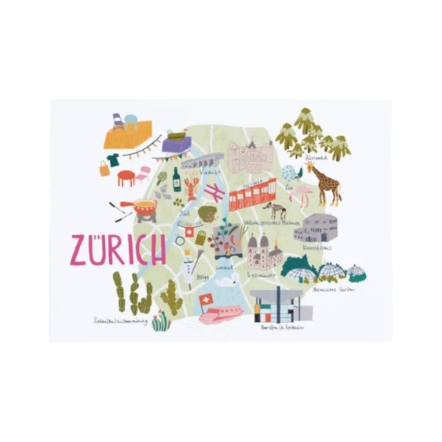 Diese stilvolle Postkarte zeigt Zürich mit all seinen kulturellen, geografischen, historischen und gesellschaftlichen Highlights – ergänzt durch spannende Insidertipps. Ob Altstadt, Limmat, Uetliberg oder das Zürcher Nachtleben: Die Karte fasst die wichtigsten Facetten der grössten Schweizer Stadt zusammen. Perfekt als Souvenir, Erinnerung oder zum Verschicken an Familie und Freunde – eine kleine Hommage an die Vielfalt Zürichs.