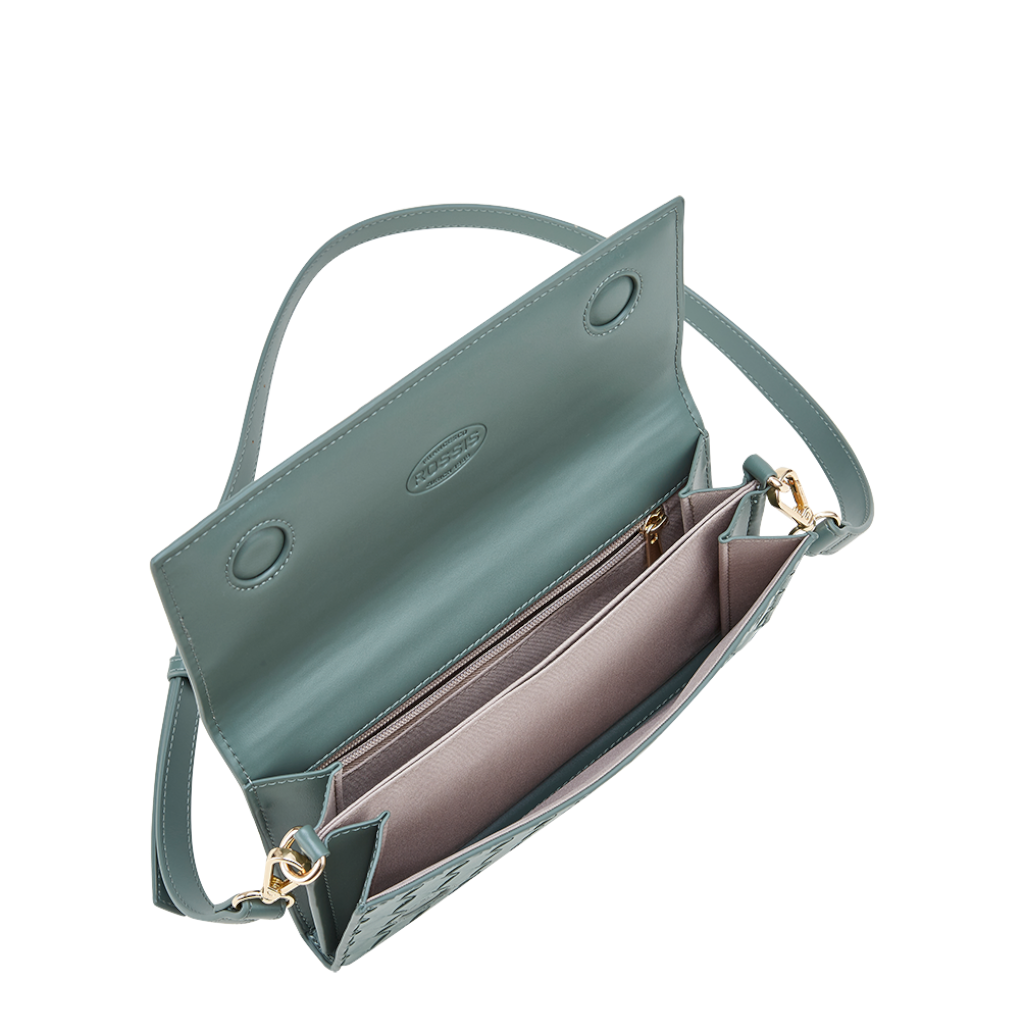 Die ROSSIS Anna Oceanside überzeugt mit einer ruhigen, maritimen Farbnote. Gefertigt aus veganem Leder und ergänzt durch ein Innenfutter aus 100% recyceltem PET, ist sie eine stilvolle Umhängetasche für den Alltag.