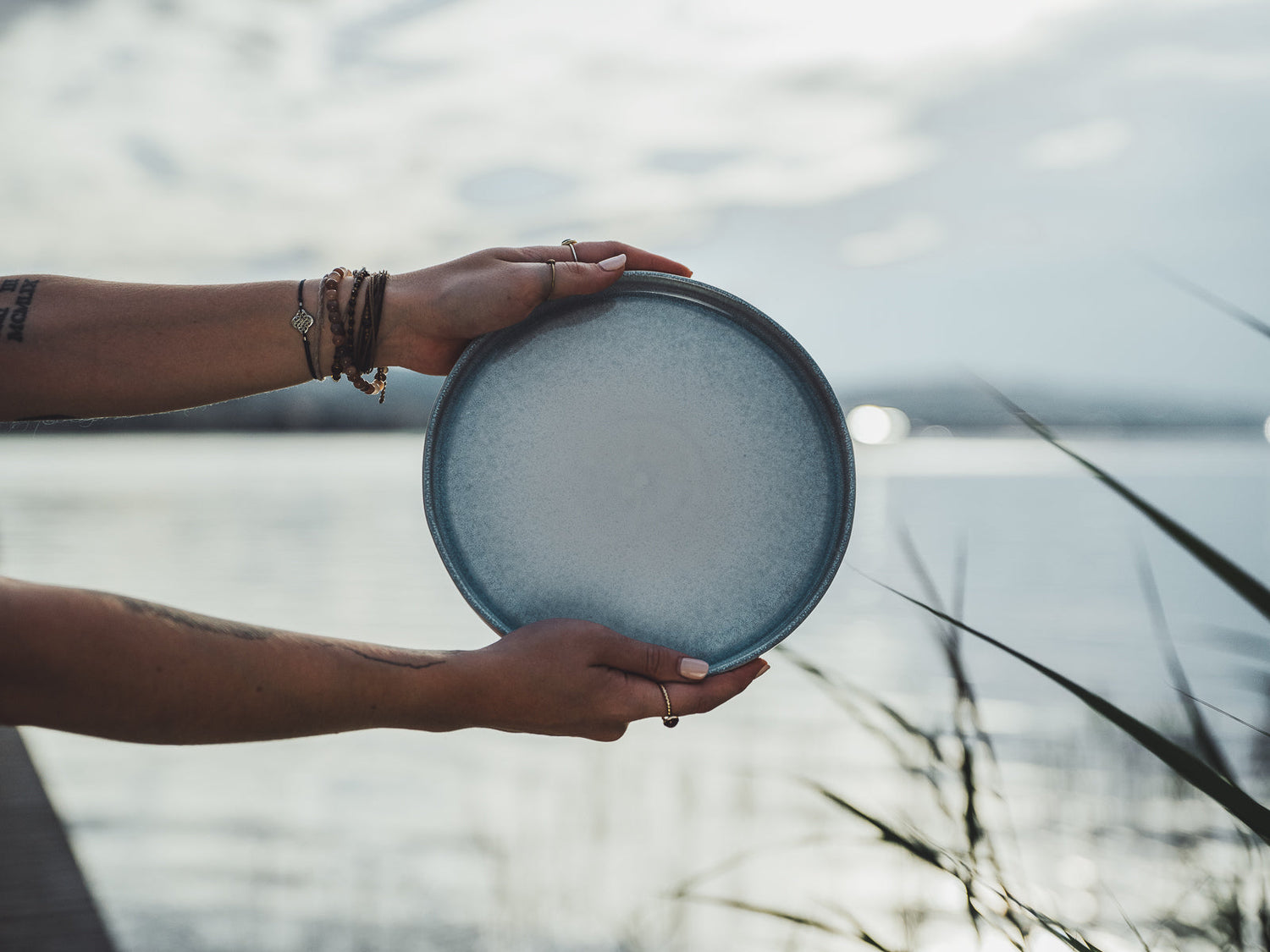 Beim Anblick unseres kleinen Brisa Tellers (22 cm) können wir beinahe die Meeresbrise fühlen. Der wunderschöne aqua-reaktive Farbverlauf erinnert an das türkis-blaue Meer und bringt den Sommer auf deinen Esstisch. Der beliebte Teller mit Rand ist eine Hommage an das Meer und bringt ein aussergewöhnliches Gefühl auf den Tisch. Der Brisa Teller kommt ausserdem mit grösseren, schlichten Teller gut zur Geltung.
