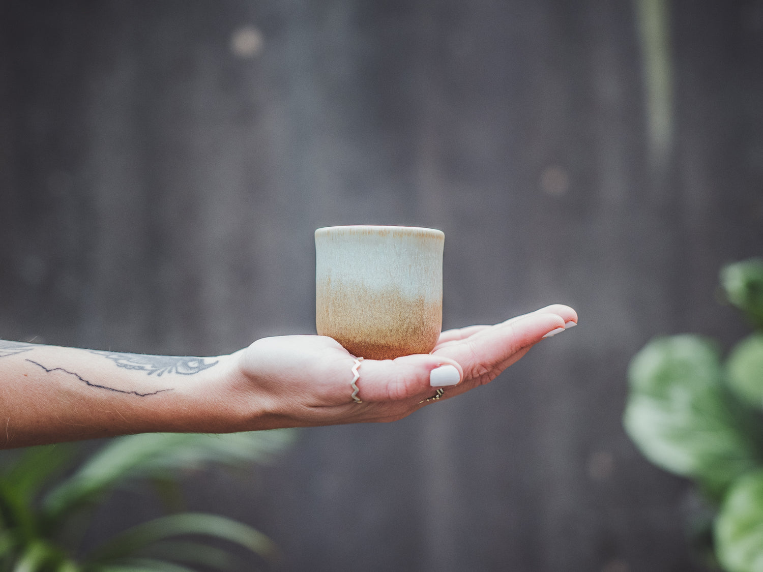 Der handgefertigte Menta Espressobecher bringt mit seinem einzigartigen Farbverlauf in zarten Braun- und Grüntönen mediterranes Flair in deinen Alltag. Inspiriert von der portugiesischen Natur, ist jedes Stück ein Unikat. Ideal für den morgendlichen Espresso oder den kleinen Kaffee zwischendurch – stilvoll, natürlich und mit Charakter. Ein Becher wie kein anderer – für genussvolle Momente.