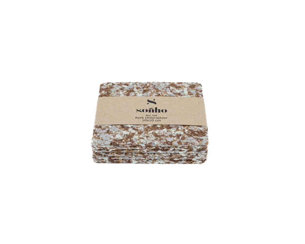 soñho Recife Kork Untersetzer 6er Set, 10 x 10 cm