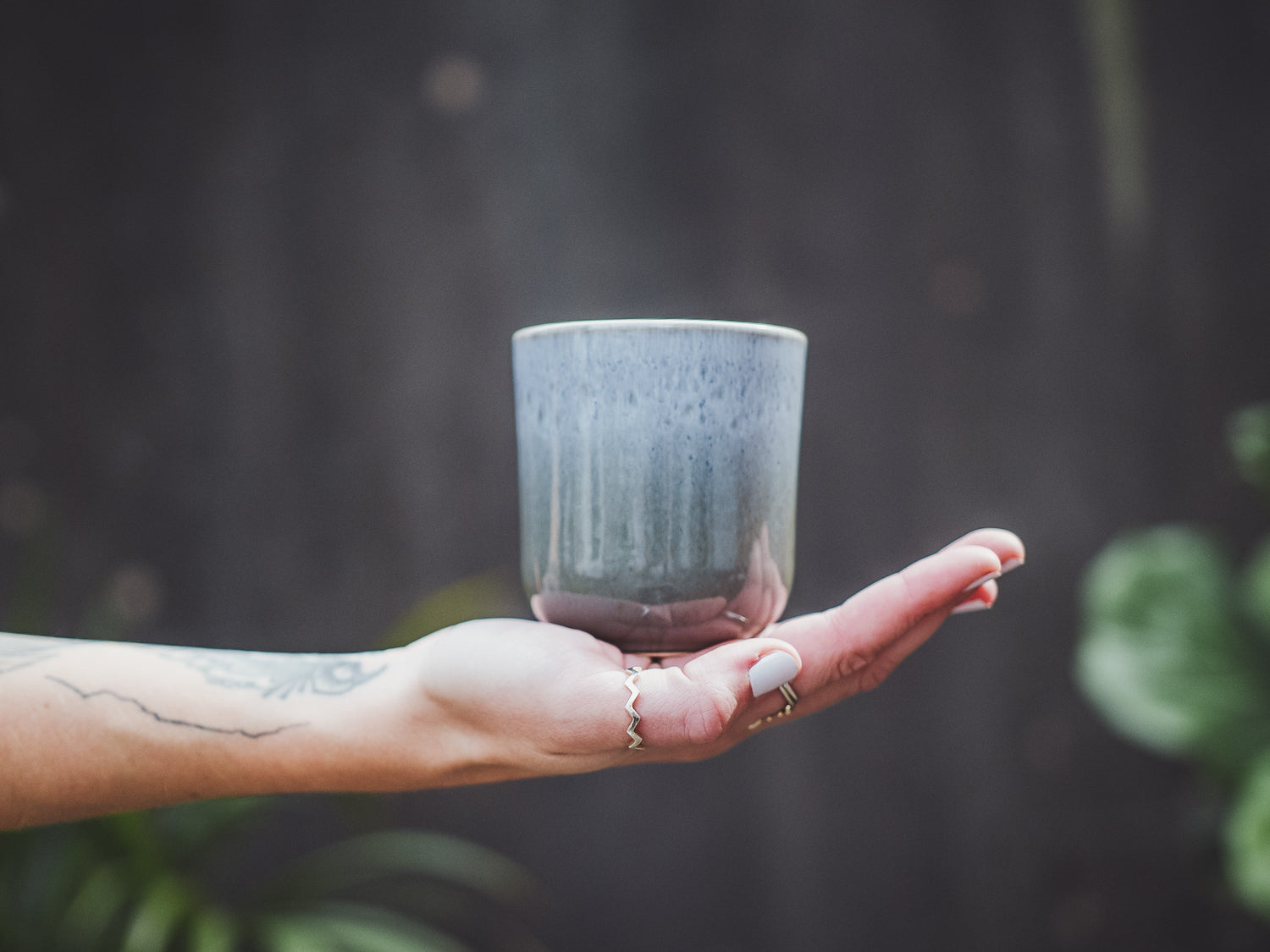 Hochwertiger Coral Azul Keramikbecher mit einem Fassungsvermögen von 2 dl – ideal für Kaffee oder Tee. Die feine Verarbeitung hält dein Getränk angenehm warm und sorgt für ein rundum genussvolles Trinkerlebnis. Das sanfte Farbspiel von Blau zu Grau und die individuelle Textur machen jeden Becher zu einem Unikat. Ein stilvoller Begleiter für den Alltag – zeitlos im Design und perfekt für deine Kaffeepausen.