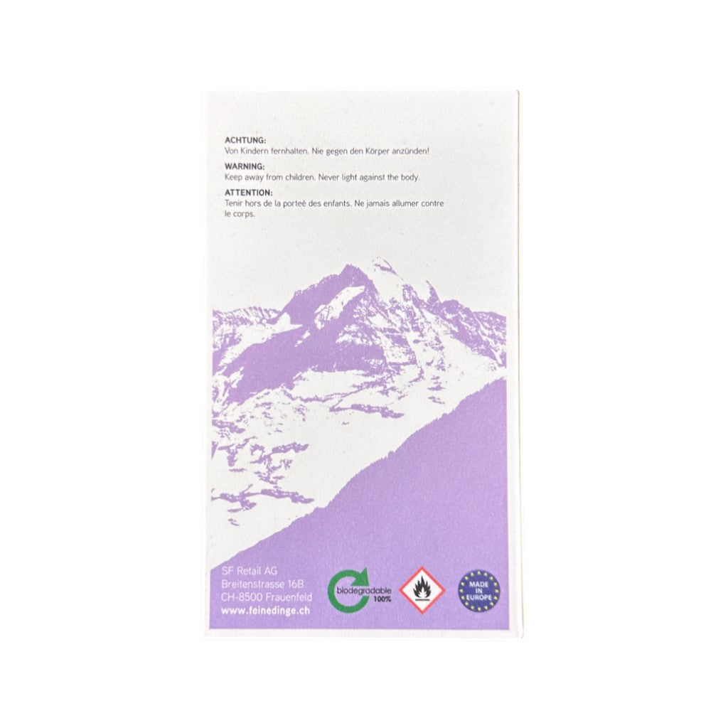 Die Jungfrau – majestätisch, ruhig, fast unberührt. Diese feine Streichholzschachtel trägt ihre Silhouette wie ein stilles Versprechen: von klarer Bergluft, knirschendem Schnee und weit offenen Horizonten. Ein kleines Designobjekt, das Wärme spendet – visuell wie tatsächlich. Zum Anzünden von Kerzen, Gedanken, Erinnerungen.